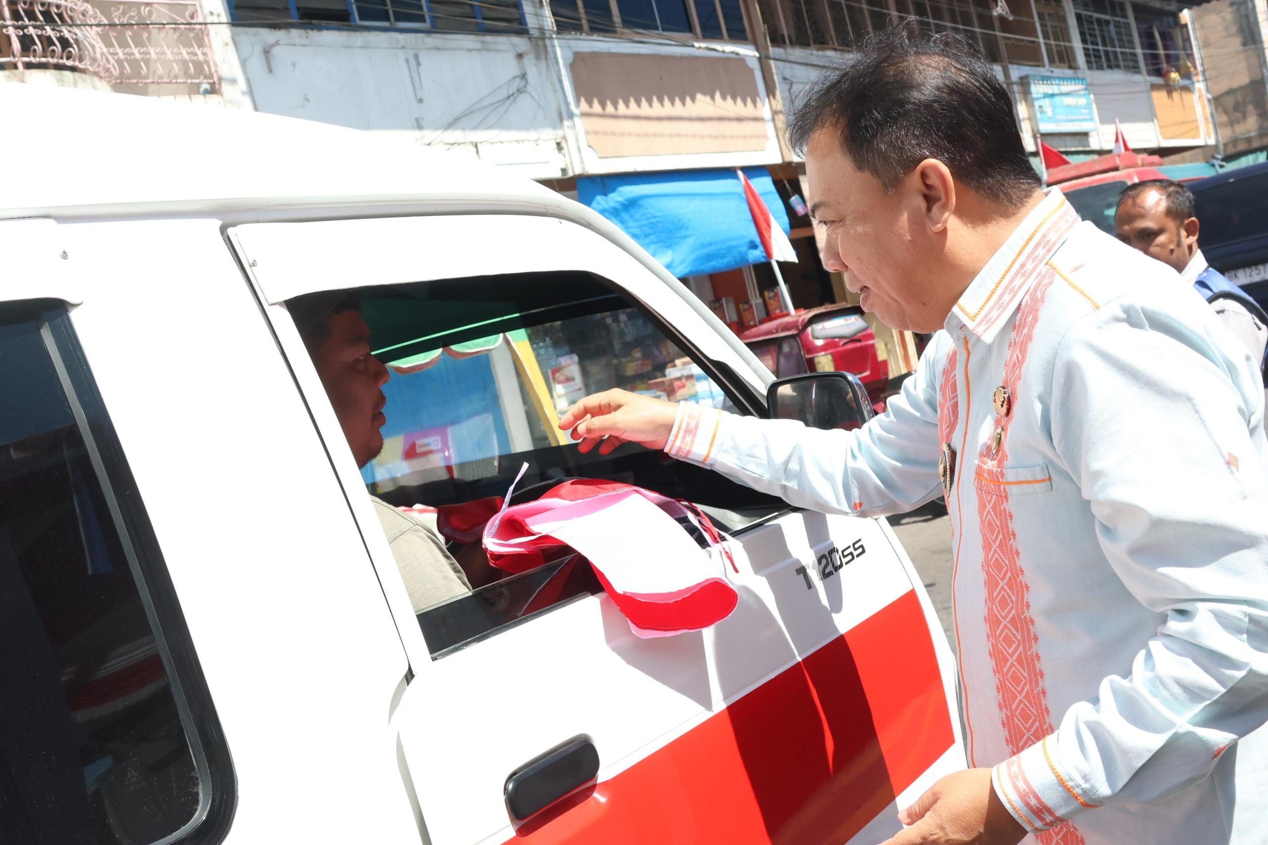 Tapanuli Selatan, Alarmpena.or.id| Menjelang peringatan Hari Ulang Tahun Kemerdekaan Republik Indonesia ke-80 pada tahun 2025, Pemerintah Kabupaten Tapanuli Selatan membagikan 500 bendera Merah Putih kepada pengguna jalan dan pedagang di Sipirok. Kegiatan ini dipimpin langsung oleh Wakil Bupati Tapanuli Selatan, Jafar Syahbuddin Ritonga, bersama Sekretaris Daerah Sofyan Adil dan sejumlah pejabat daerah, berlangsung di Jalan Alun-Alun Pardomuan dan Pasar Sipirok, Kamis (14/8/2025).