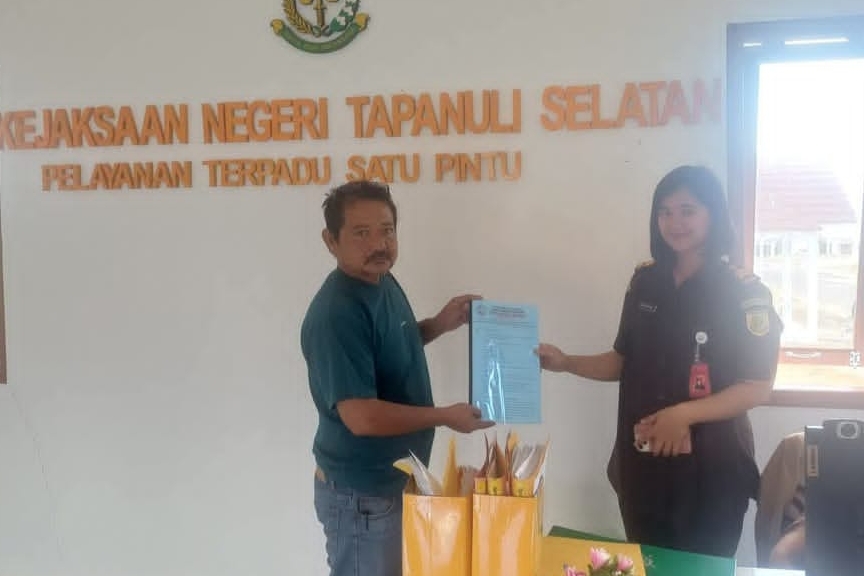 Surat laporan resmi dari DPD Perkumpulan WIB Tapanuli Selatan telah diterima oleh Staf Pelayanan Terpadu Satu Pintu (PTSP) Kejaksaan Negeri Tapanuli Selatan, Esra Prilycia, pada Kamis siang.