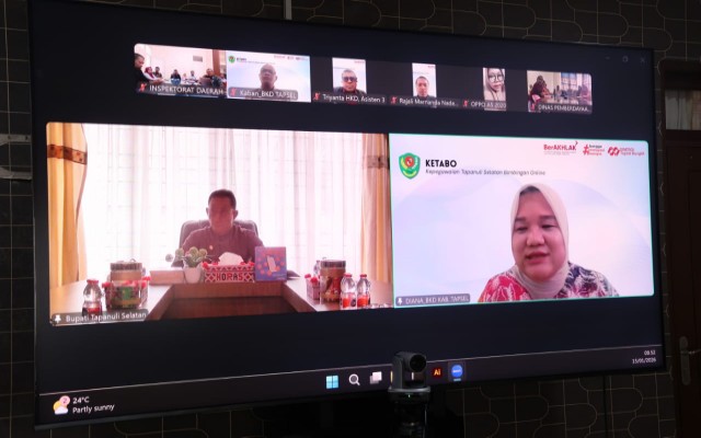 Sipirok,Alarmpena.or.id – Bupati Tapanuli Selatan, H. Gus Irawan Pasaribu, membuka secara resmi Zoom Meeting KETABO (Kepegawaian Tapanuli Selatan Bimbingan Online) Seri I yang berlangsung di Ruang Rapat Bupati, Kompleks Perkantoran Bupati Tapanuli Selatan, Sipirok,Kamis 15 Januari 2026. Kegiatan ini diselenggarakan oleh Badan Kepegawaian Daerah (BKD) Kabupaten Tapanuli Selatan dan diikuti oleh Aparatur Sipil Negara (ASN) dari seluruh Organisasi Perangkat Daerah (OPD) serta kecamatan se-Kabupaten Tapanuli Selatan.
