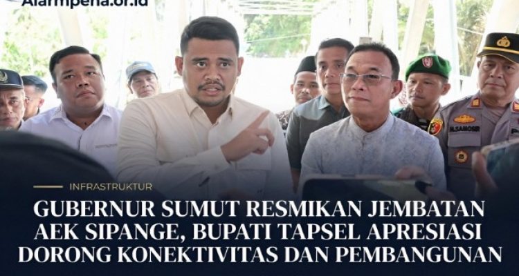 Gubernur Sumut Resmikan Jembatan Aek Sipange, Bupati Tapsel Apresiasi Dorong Konektivitas dan Pembangunan Liputan Khusus, Nasional, Pemerintah|Maret 6, 2026Maret 6, 2026oleh Alarmpena Tapanuli Selatan, Alarmpena.or.id — Gubernur Sumatera Utara, Bobby Afif Nasution, meresmikan Jembatan